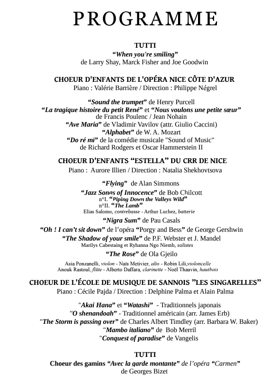Au programme, visite de Cannes et de la croisette, visite de Grasse, cité des parfums et bien sûr, travail d’arrache pied pour deux magnifiques concert à l’église St Michel de Villefranche sur mer et à la l’Opéra de Nice.